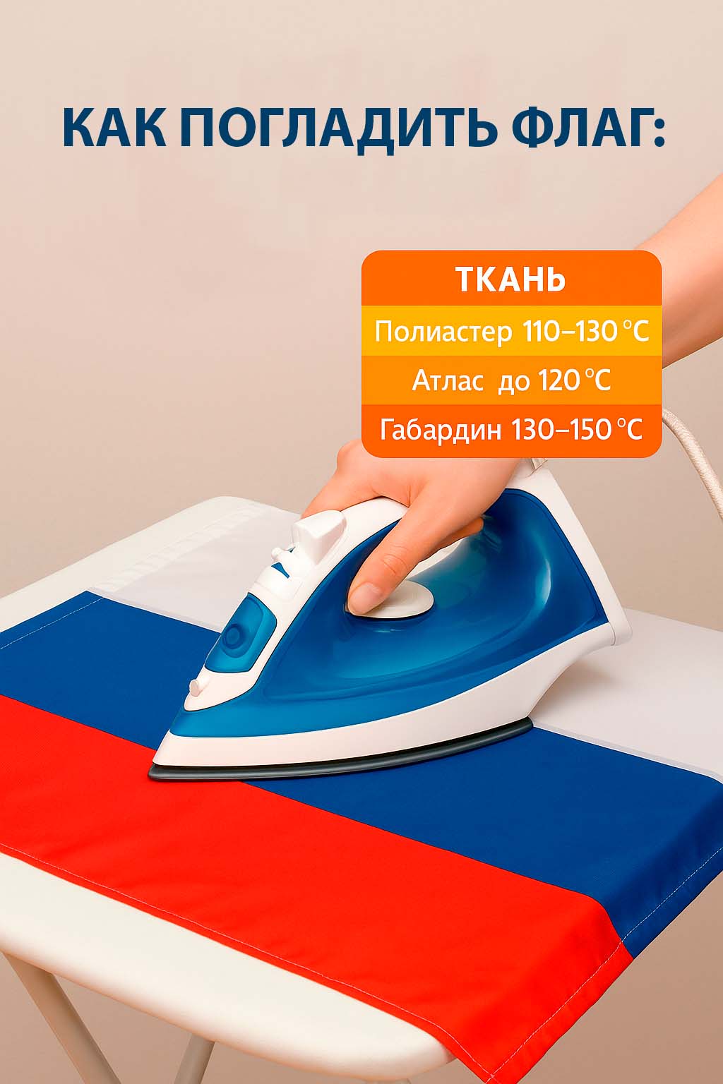 Особенно если флаг содержит печать, логотип или термоплёнку. Так вы избежите выцветания и деформации рисунка. Можно также накрыть флаг тонкой хлопковой тканью или марлей для дополнительной защиты.