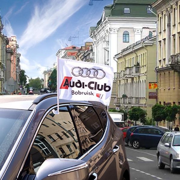 - Автомобильные флаги — устанавливаются на окна и капоты, подходят для PR-мероприятий, мотопробегов, свадеб, встреч;