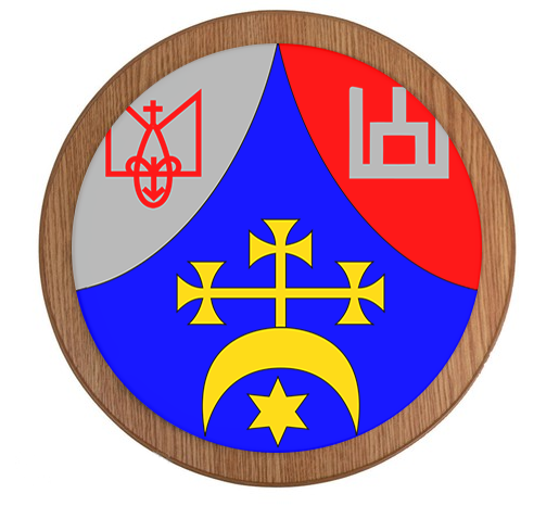Герб Будда-Кошелёвского района тканевый на деревянной подложке