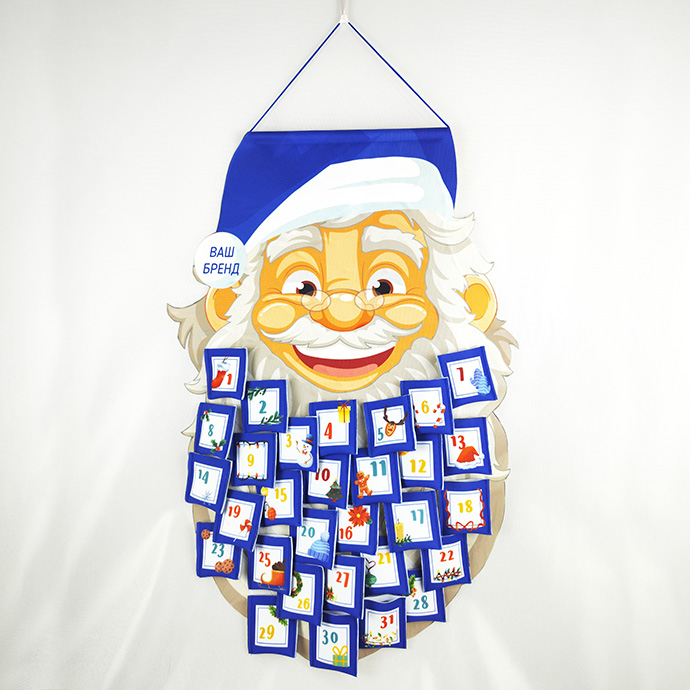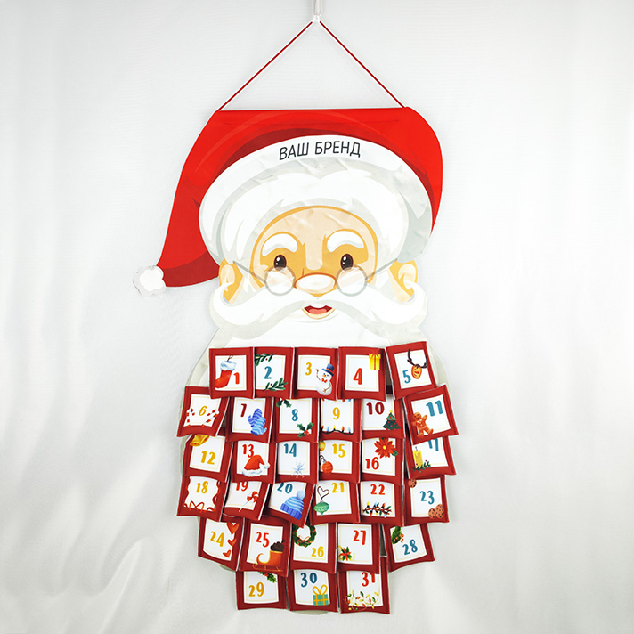 Календарь легко крепится на стену, создавая атмосферу уюта и новогоднего волшебства.