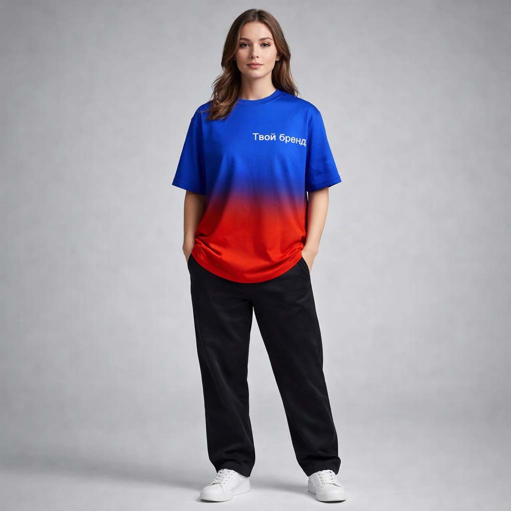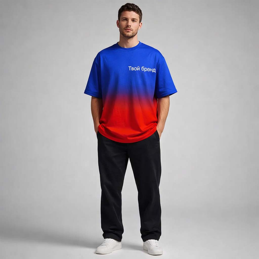 Современный свободный крой в сочетании с безграничными возможностями дизайна. Модель оверсайз — это не только тренд, но и максимальный комфорт. Благодаря сублимационной печати в крое, вы можете окрасить изделие в любой цвет по палитре CMYK, нанести масштабные принты, градиенты или элементы фирменного стиля.
