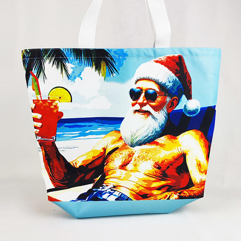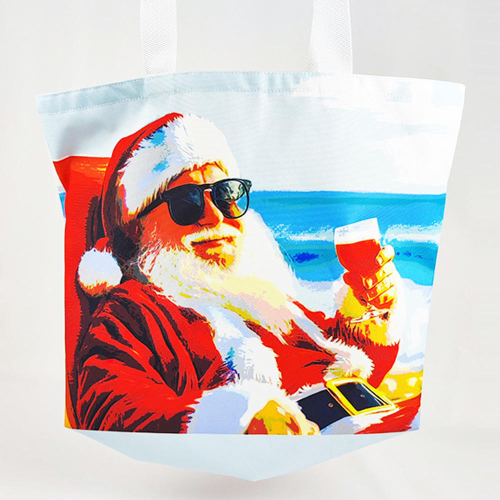 Этот вместительный шоппер объединяет праздничное настроение и летний драйв! На сумке изображён Санта Клаус, отдыхающий на пляже с коктейлем в руке — яркий и оригинальный дизайн, который точно привлечёт внимание.
