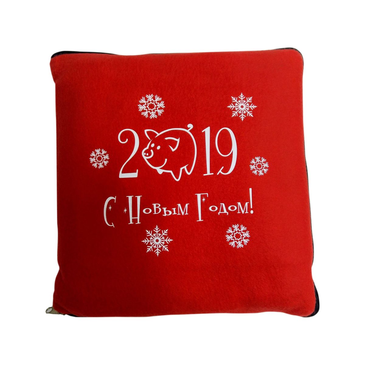 Квадратный плед в виде подушки с замком по периметру с 3-х сторон. С обеих сторон вставка с полноцветной печатью. На вставке мы напечатаем любой Ваш логотип или рисунок от края до края. Возможно дополнение пледа вышивкой.