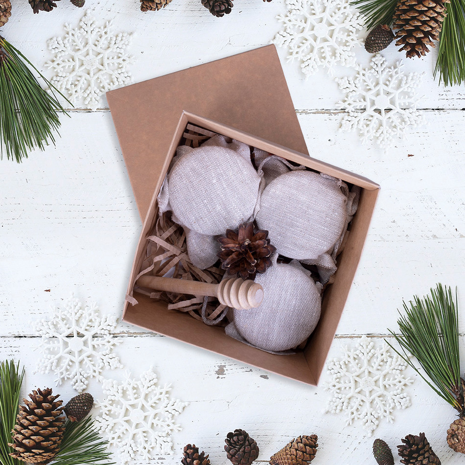 - Крем-мёд 120гр., с декоративной обвязкой натуральной тканью,