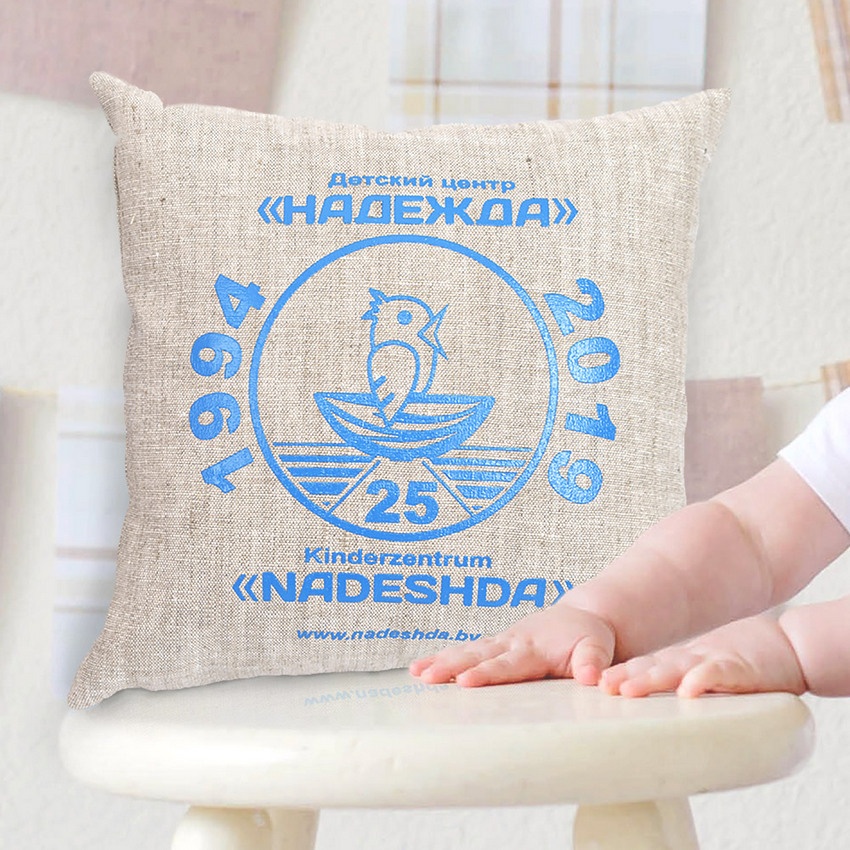 Изготовление подушек изо льна с нанесением до 5 цветов и возможностью вышивки. По желанию можем добавить фирменный ярлычок.
