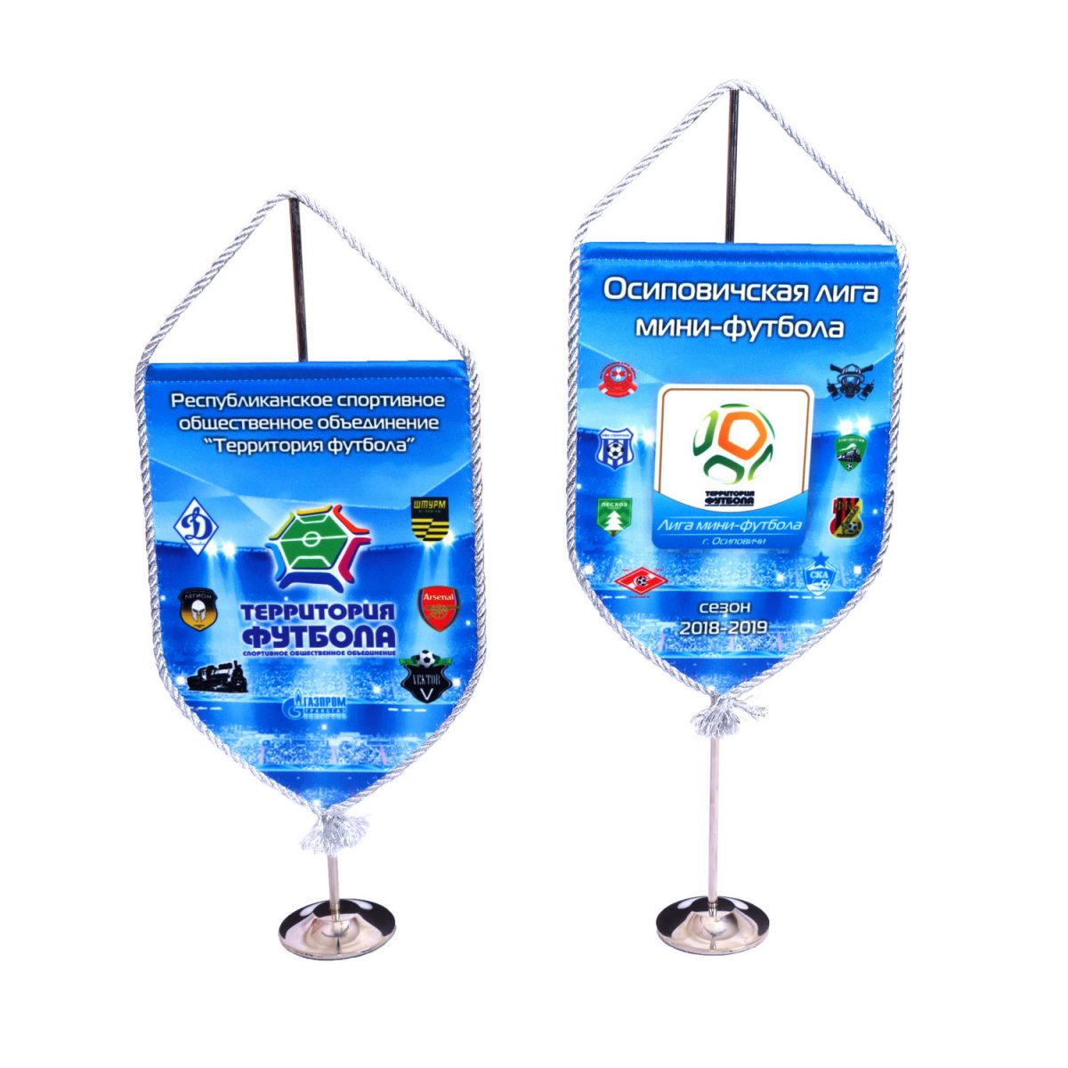Вымпелы с логотипом с полноцветной печатью — отличный подарок для спортивных мероприятиях, коллег, сотрудников, партнеров. Производство вымпелов до размера А3 различных форм (треугольные, закругленные, пятиугольные и любые формы!). Вымпелы можно повесить на стену или разместить на столе на специальной подставке.